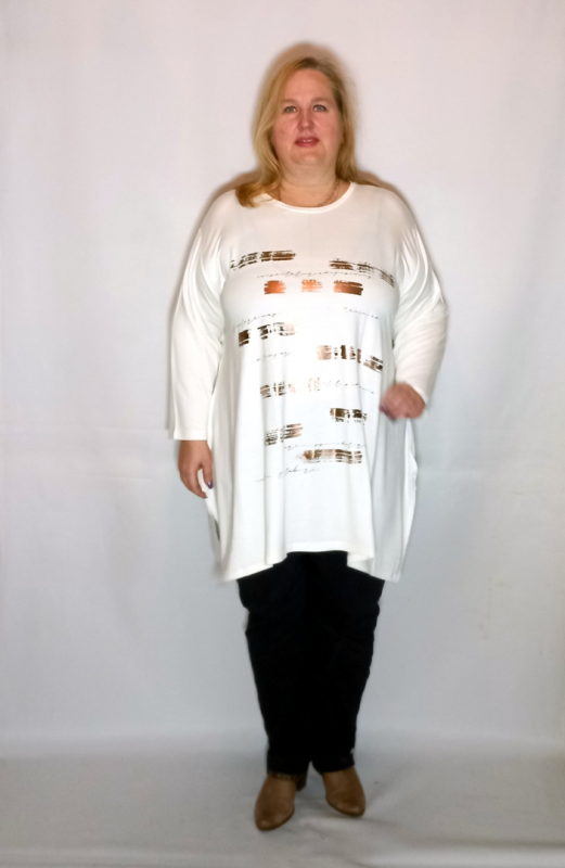 Удлиненная туника А-силуэта выполнена из высококачественного, трикотажного полотна с 95% содержанием вискозы.