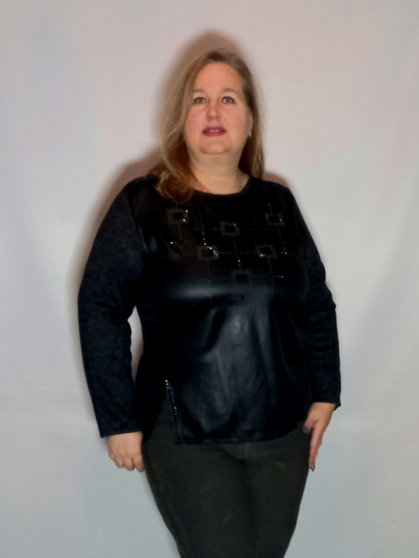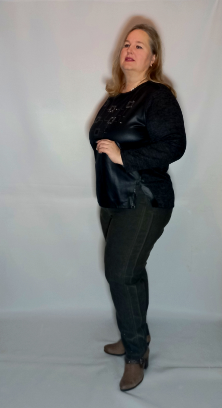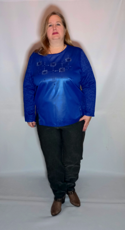 Тепленький и оригинальный блузон выполнен из сочетаний трикотажа по д кожу ( средней плотности, умерено эластичный, гладкий с наружи, внутри как обычный трикотаж) и ангоры меланж( мягонькая, эластичная, не рыхлая).