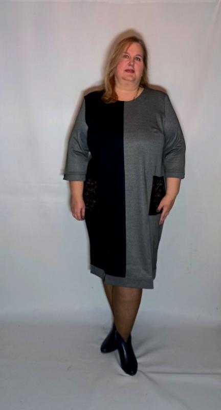 Платье выполнено из плотного трикотажа двух видов : однотонный и с рисунком. Трикотаж приятный, умеренно эластичный